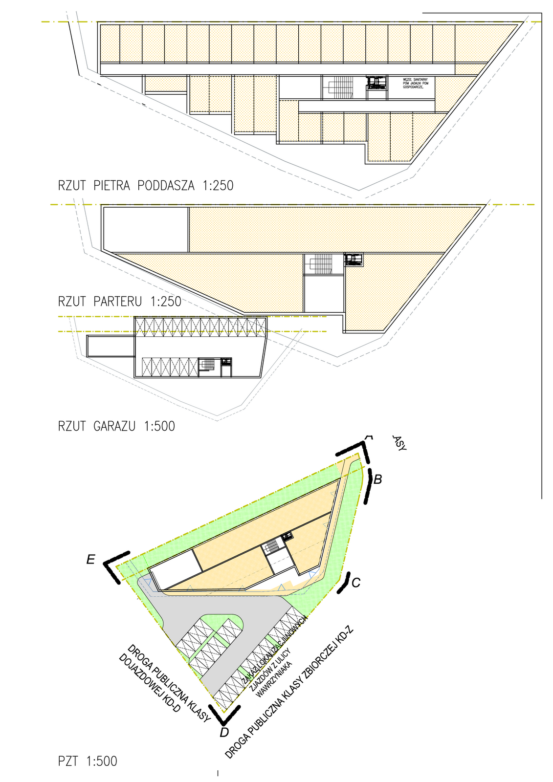zakres opracowania_ linia zabudowy zgodna z MPZP_dopuszczalna zabudowa parteru_przewieszenie kondygnacji nad parterem_ moduły lokali_ zadaszenie_architektura